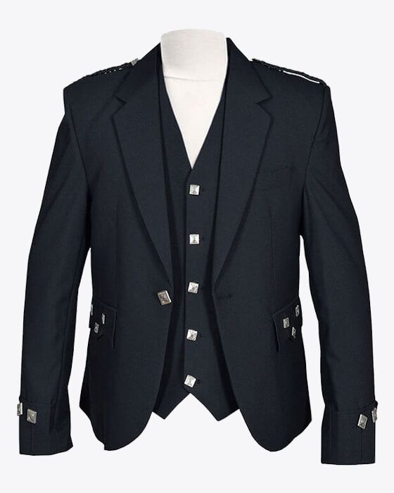The Argyle jacket and waistcoat are a traditional formal outfit for semi-formal occasions during the day but also suitable for evening events.