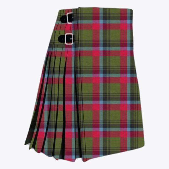 Each tartan kilt has 3 buckles and straps for size adjustment: genuine leather waist straps (4" long by 1 1/4" wide). Kilt straps on this kilt are set with an allowance of 2" looser. This kilt's front edge has fringe and is pleated to the sett but can be pleated to stripe by request. There are two belt loops at the back. The kilt has a 100% cotton lining for a soft feel when being worn. The standard kilt comes with a 5-yard, but you can convert it into an 8-yard by selecting the "8-yard kilt" option.