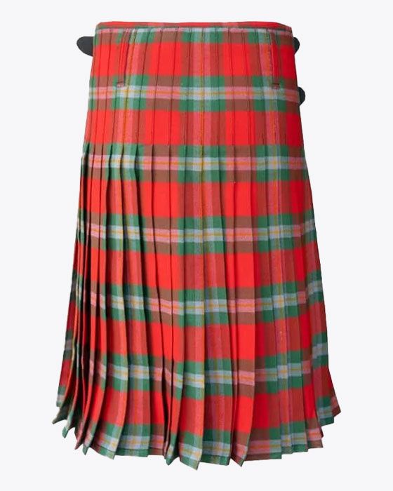 Each tartan kilt has 3 buckles and straps for size adjustment: genuine leather waist straps (4" long by 1 1/4" wide). Kilt straps on this kilt are set with an allowance of 2" looser. This kilt's front edge has fringe and is pleated to the sett but can be pleated to stripe by request. There are two belt loops at the back. The kilt has a 100% cotton lining for a soft feel when being worn. The standard kilt comes with a 5-yard, but you can convert it into an 8-yard by selecting the "8-yard kilt" option.