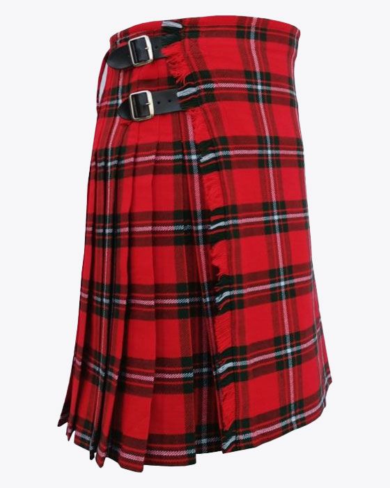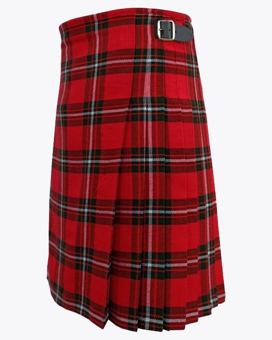 Each tartan kilt has 3 buckles and straps for size adjustment: genuine leather waist straps (4" long by 1 1/4" wide). Kilt straps on this kilt are set with an allowance of 2" looser. This kilt's front edge has fringe and is pleated to the sett but can be pleated to stripe by request. There are two belt loops at the back. The kilt has a 100% cotton lining for a soft feel when being worn. The standard kilt comes with a 5-yard, but you can convert it into an 8-yard by selecting the "8-yard kilt" option.