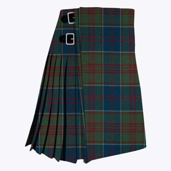 Each tartan kilt has 3 buckles and straps for size adjustment: genuine leather waist straps (4" long by 1 1/4" wide). Kilt straps on this kilt are set with an allowance of 2" looser. This kilt's front edge has fringe and is pleated to the sett but can be pleated to stripe by request. There are two belt loops at the back. The kilt has a 100% cotton lining for a soft feel when being worn. The standard kilt comes with a 5-yard, but you can convert it into an 8-yard by selecting the "8-yard kilt" option.